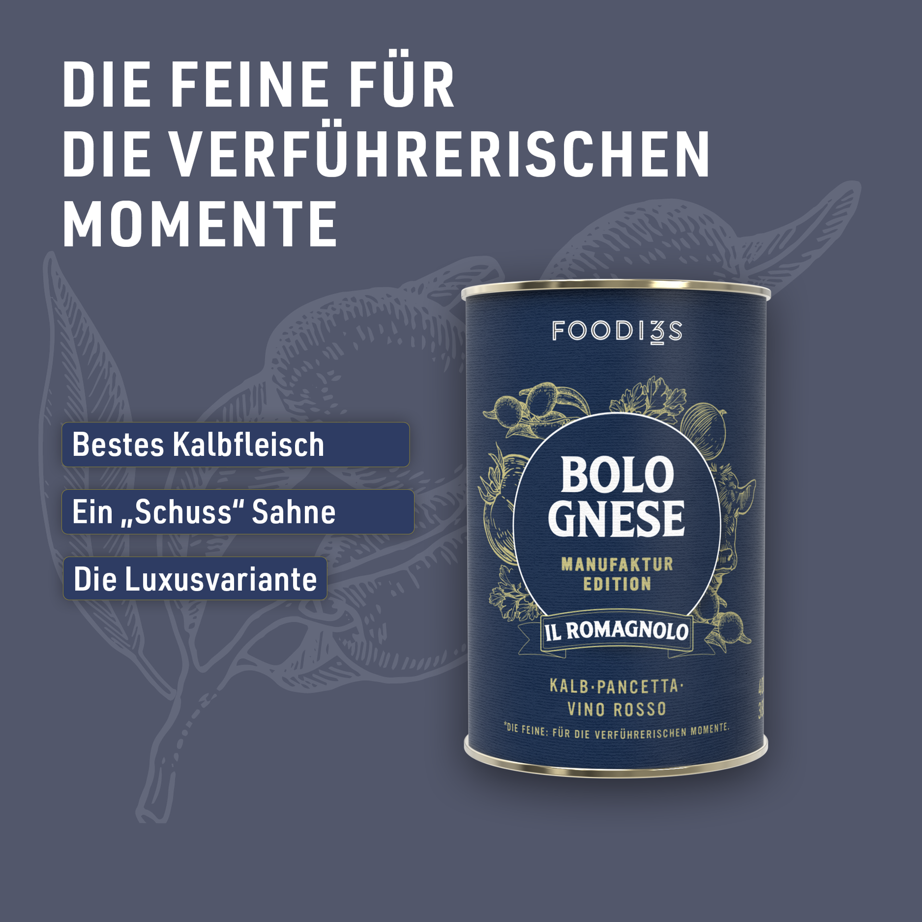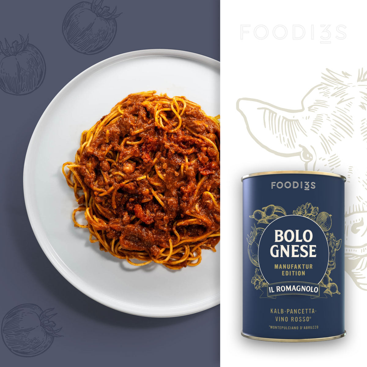 Der Romagnolo ist der stolze Bewohner der Region von Bologna und hier hat natürlich jede Familie seine Interpretation der perfekten Bolognese. Auch wenn die Grundzutaten und Verhältnisse von der „Academia Italiana della Cucina" bereits festgelegt sind, haben auch wir uns daran gemacht die Luxusvariante der originalen Bolognese aus unserem Kochtopf in die Dose zu bringen.